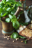 Zdjęcie "sos pesto z składników na drewniane tła" może być wykorzystywane do celów osobistych i komercyjnych zgodnie z warunkami zakupionej licencji Royalty-free. Obraz jest dostępny do pobrania w jakości wysokiej rozdzielczości do 5760x3840.