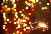 piękne iskry na tle girlandy. piękna karta świąteczna na Nowy Rok.