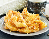 Azjatyckie jedzenie. Samsa wegetariańska (samosa) z sosem pomidorowym