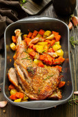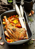 Zdjęcie "Udo z indyka zapiekane z warzywami." może być wykorzystywane do celów osobistych i komercyjnych zgodnie z warunkami zakupionej licencji Royalty-free. Obraz jest dostępny do pobrania w jakości wysokiej rozdzielczości do 5760x3840.