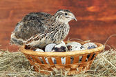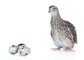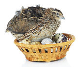 Młode przepiórki z jaj na białym tle