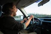 Zdjęcie "Młoda kobieta jeździ swoim SUV-em w lesie" może być wykorzystywane do celów osobistych i komercyjnych zgodnie z warunkami zakupionej licencji Royalty-free. Obraz jest dostępny do pobrania w jakości wysokiej rozdzielczości do 5760x3840.