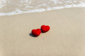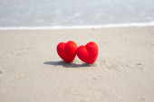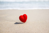 słowo Miłość na piasku na plaży, koncepcyjny symbol walentynek