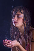mokra twarz kobiety z kropli wody.