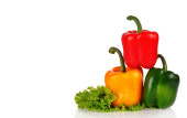 czerwony, zielony i żółty papryki na Sałatka z liści