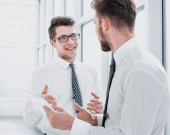 dwóch młodych mężczyzn rozmawia w studiu telewizyjnym