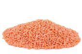 zbliżenie: soczewica czerwona w słoiku z tworzyw sztucznych