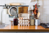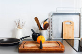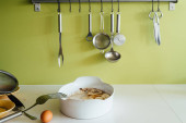 Zdjęcie "Biała kuchnia wyposażenie wnętrz i naczynia personel" może być wykorzystywane do celów osobistych i komercyjnych zgodnie z warunkami zakupionej licencji Royalty-free. Obraz jest dostępny do pobrania w jakości wysokiej rozdzielczości do 5760x3840.