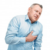 Dojrzały człowiek cierpi z zawał serca na białym tle