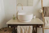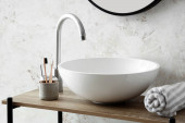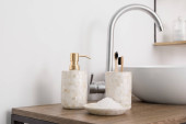 Kosmetyki do pielęgnacji ciała z akcesoriami w pobliżu zlewu w łazience