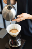 Barista mielenie świeżej ziarna kawy w portafilter do espresso