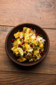 Zdjęcie "Aloo chaat lub czat Alu jest popularnym ulicznym jedzeniem pochodzącym z subkontynentu indyjskiego, zwłaszcza północnych Indii. To prosty przepis na jedzenie.." może być wykorzystywane do celów osobistych i komercyjnych zgodnie z warunkami zakupionej licencji Royalty-free. Obraz jest dostępny do pobrania w jakości wysokiej rozdzielczości do 5760x3840.