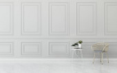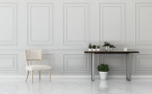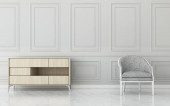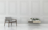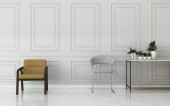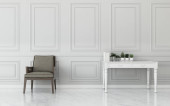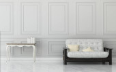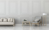 Pokój dzienny z białą sofą i fotelem. zabytkowy wystrój wnętrza. -Renderowanie 3d