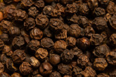 zbliżenie stos czarny pieprz i drewniana łyżka