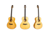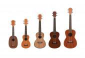 zestaw sześciu strun akustyczne drewniane gitary izolowane na białym tle. kształt gitary
