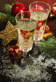 Kompozycja z dwa kieliszki do szampana, szczelnie-do góry