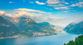 Zdjęcie "Jezioro Lugano panoramiczny pejzaż. Miasto i góry. Ticino, swiss, Europa" może być wykorzystywane do celów osobistych i komercyjnych zgodnie z warunkami zakupionej licencji Royalty-free. Obraz jest dostępny do pobrania w jakości wysokiej rozdzielczości do 5760x3840.