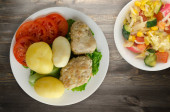 kotlet z ziemniakami na białym talerzu. kotlet z ziemniakami na