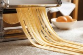 Zdjęcie "Kobieta przygotowuje makaron z maszyny makaron przy stole, blisko" może być wykorzystywane do celów osobistych i komercyjnych zgodnie z warunkami zakupionej licencji Royalty-free. Obraz jest dostępny do pobrania w jakości wysokiej rozdzielczości do 5760x3840.