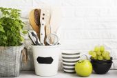 Zdjęcie "Kuchnia regały organizacji sztućce owocowe. Domowy minimalizm zero marnotrawstwa. Martwa natura z koszykami z ananasem, pomarańczami, cytrynami na białym ceglanym tle. Nowoczesny trend" może być wykorzystywane do celów osobistych i komercyjnych zgodnie z warunkami zakupionej licencji Royalty-free. Obraz jest dostępny do pobrania w jakości wysokiej rozdzielczości do 5760x3840.