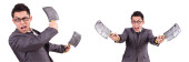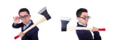 Zdjęcie "Biznes człowiek trzyma młotek odizolowany na biały" może być wykorzystywane do celów osobistych i komercyjnych zgodnie z warunkami zakupionej licencji Royalty-free. Obraz jest dostępny do pobrania w jakości wysokiej rozdzielczości do 5760x3840.