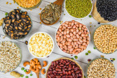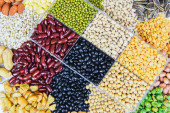 Kolaż różne ziarna mieszanki grochu rolnictwo naturalne zdrowe fo