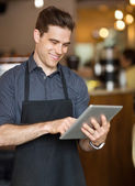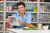 Zdjęcie "Właściciel wyświetlone cyfrowe tabletki w sklepie" może być wykorzystywane do celów osobistych i komercyjnych zgodnie z warunkami zakupionej licencji Royalty-free. Obraz jest dostępny do pobrania w jakości wysokiej rozdzielczości do 5760x3840.