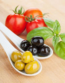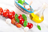 mozzarella, oliwki, pomidory i bazylia