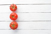 Świeże czerwone pomidory na ciemnym tle. Warzywa. Widok góry. Wolne miejsce na tekst.