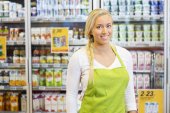 ekspedientka wyświetlanie pricetag w sklepie spożywczym