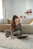 Zdjęcie "Cute uśmiechnięta studentka z dredami robi notatki siedząc na podłodze przed laptopem" może być wykorzystywane do celów osobistych i komercyjnych zgodnie z warunkami zakupionej licencji Royalty-free. Obraz jest dostępny do pobrania w jakości wysokiej rozdzielczości do 5760x3840.