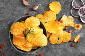 Zdjęcie "Płyta ze smacznymi chipsami ziemniaczanymi na stole, zbliżenie" może być wykorzystywane do celów osobistych i komercyjnych zgodnie z warunkami zakupionej licencji Royalty-free. Obraz jest dostępny do pobrania w jakości wysokiej rozdzielczości do 5760x3840.