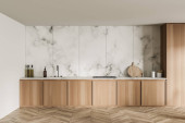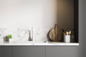 Zdjęcie "Szare blaty w luksusowej kuchni z białego marmuru" może być wykorzystywane do celów osobistych i komercyjnych zgodnie z warunkami zakupionej licencji Royalty-free. Obraz jest dostępny do pobrania w jakości wysokiej rozdzielczości do 5760x3840.
