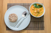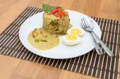 smażony ryż zielone curry z wieprzowiną i gotować jajo