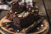 Domowej roboty ciasto czekoladowe z migdałami na stole