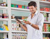 człowiek sprawdzania listy spożywczego w supermarkecie