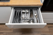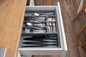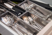 Zdjęcie "kolekcja błyszczących sztućców w czarnym pojemniku w kuchni, widok z bliska" może być wykorzystywane do celów osobistych i komercyjnych zgodnie z warunkami zakupionej licencji Royalty-free. Obraz jest dostępny do pobrania w jakości wysokiej rozdzielczości do 5760x3840.