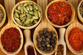 wiele różnych przypraw i ziół pachnących szczegół tło