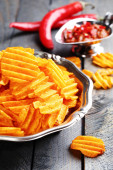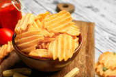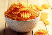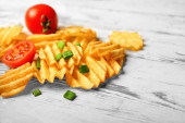 Miska z smaczne frytki na stole
