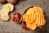 Miska z smaczne frytki na stole