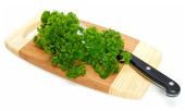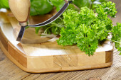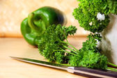 świeżo posiekanej natki pietruszki na cięcia drewna