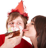 dwóch nastolatków świętować urodziny. na białym tle.