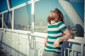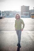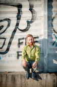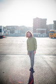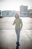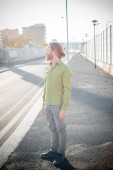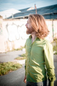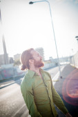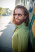hipster stylowy model z długie czerwone włosy i broda styl życia