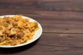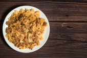 Zdjęcie "makaron z mięsem na ciemnym tle. na widelcu makaron w kształcie motyla z mięsem. widok z góry. miejsce na tekst. Zdjęcie na baner" może być wykorzystywane do celów osobistych i komercyjnych zgodnie z warunkami zakupionej licencji Royalty-free. Obraz jest dostępny do pobrania w jakości wysokiej rozdzielczości do 5760x3840.