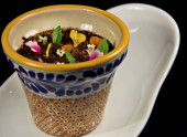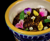 Drobny sernik czekoladowy i jadalne kwiaty