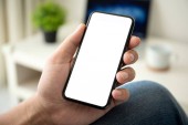 żeńskie ręce trzymając telefon z izolowanym tle ekranu telewizora