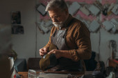 Zdjęcie "starszy szewc robi dziury w skórze z wykrawaczem" może być wykorzystywane do celów osobistych i komercyjnych zgodnie z warunkami zakupionej licencji Royalty-free. Obraz jest dostępny do pobrania w jakości wysokiej rozdzielczości do 5760x3840.