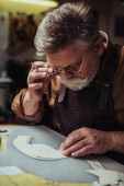 przycięty widok szewc wycinanie szablon w warsztacie
