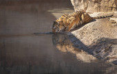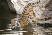 Zdjęcie "Tygrys leży w pobliżu wody w zoo." może być wykorzystywane do celów osobistych i komercyjnych zgodnie z warunkami zakupionej licencji Royalty-free. Obraz jest dostępny do pobrania w jakości wysokiej rozdzielczości do 5760x3840.