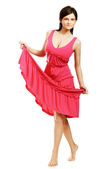 młoda kobieta wysokie skoki w powietrzu z uśmiechem
